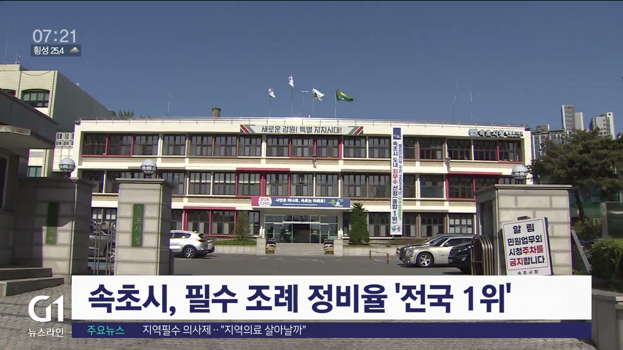 나라살림연구소가 공개한 필수 조례 정비율을 보면 속초시 정비율은 97.3%로 전국 기초단체 중 1위를 기록했습니다.