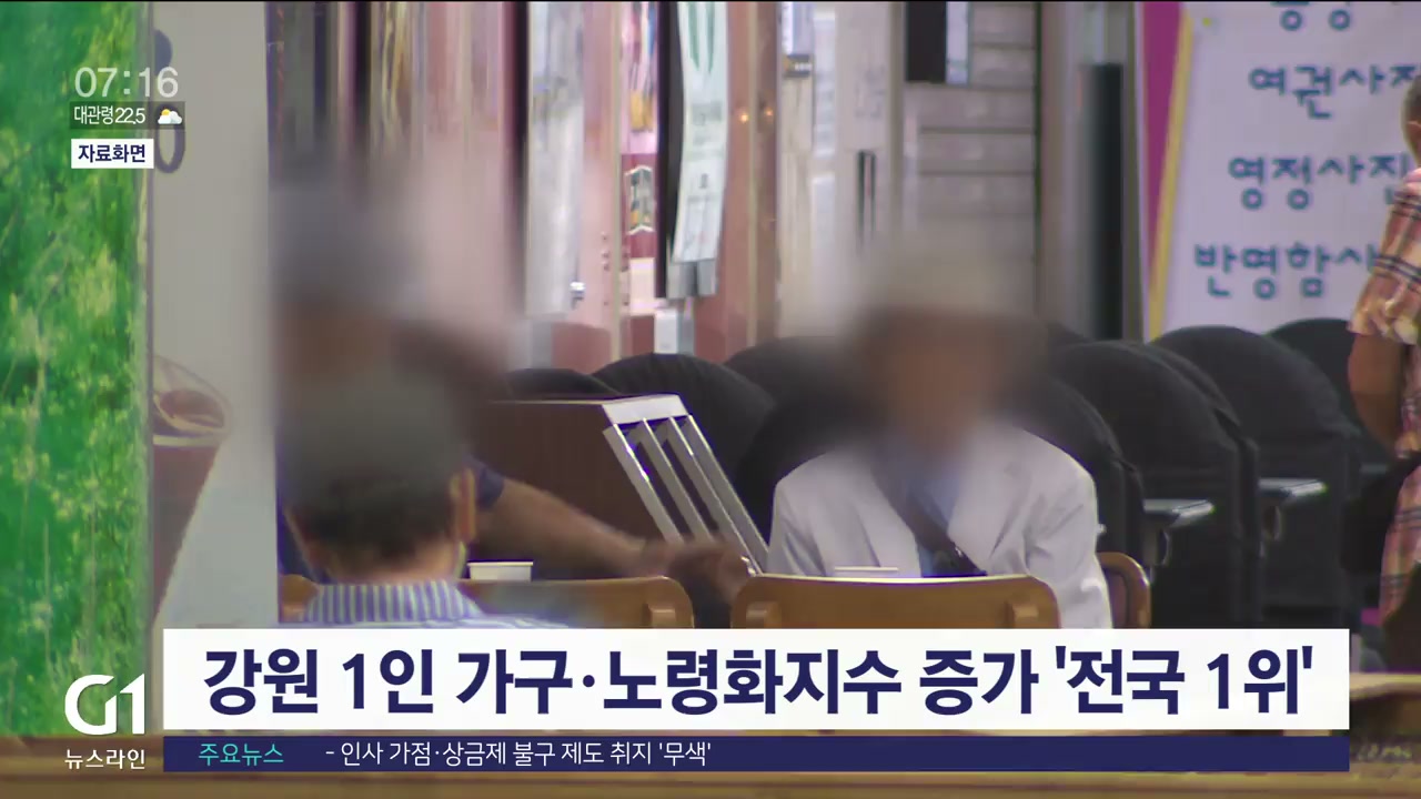 지난해 강원자치도의 1인 가구와 노령화지수 증가율이 전국 최고를 기록했습니다.