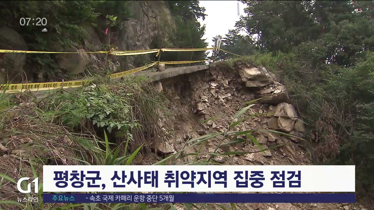 지속된 호우로 지반이 약해져 산사태 발생 가능성이 높은 가운데, 평창군이 산사태 취약지역 집중 점검을 벌입니다.