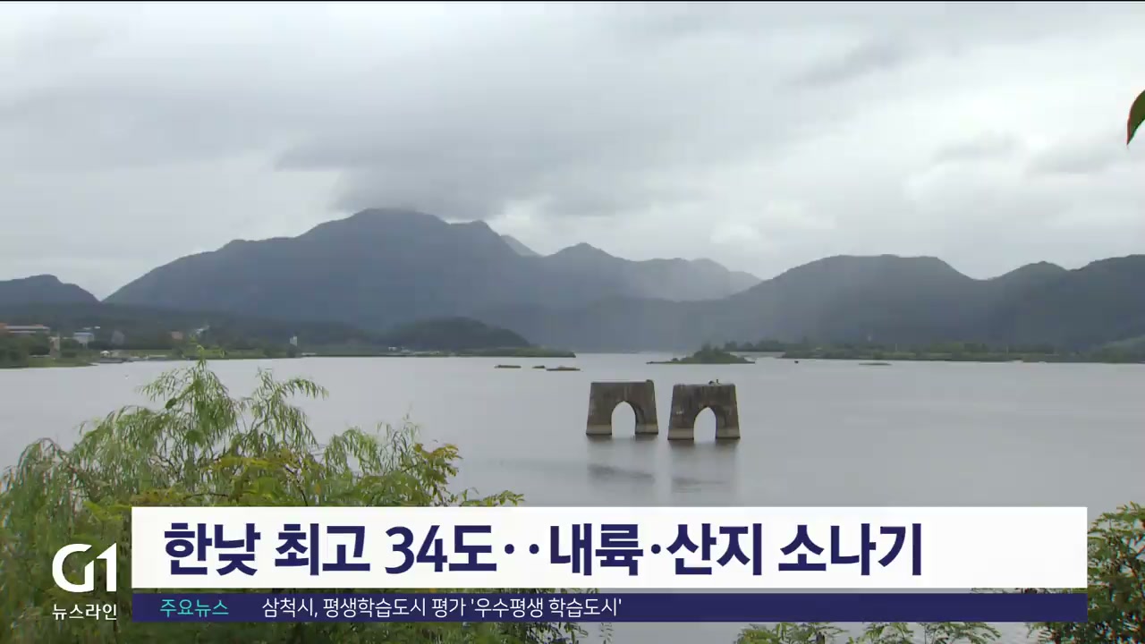 오늘도 도 전역에서 무더위가 이어지겠고 내륙과 산지를 중심으로 소나기가 쏟아지는 곳이 있겠습니다.