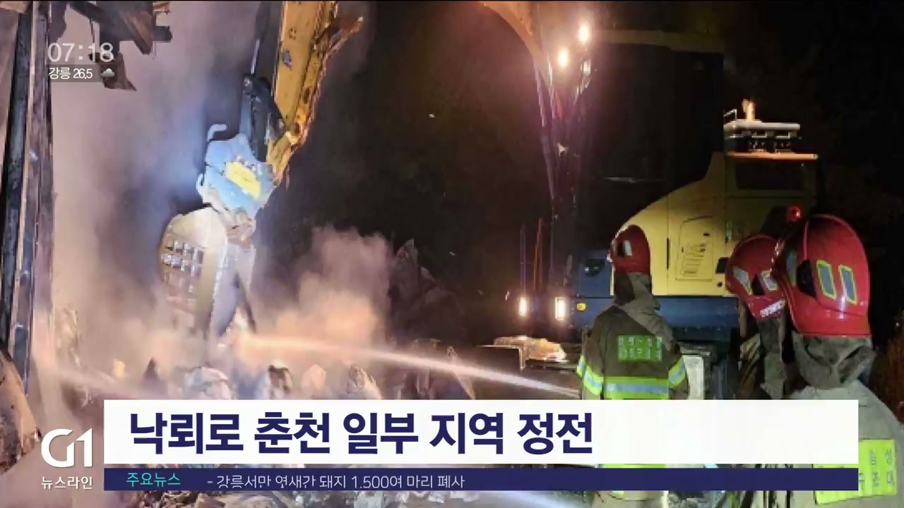 전날(5일) 강원 내륙과 산지를 중심으로 번개를 동반한 폭우가 쏟아지면서, 춘천 일부 지역에 전기가 끊기는 등 피해가 이어졌습니다.