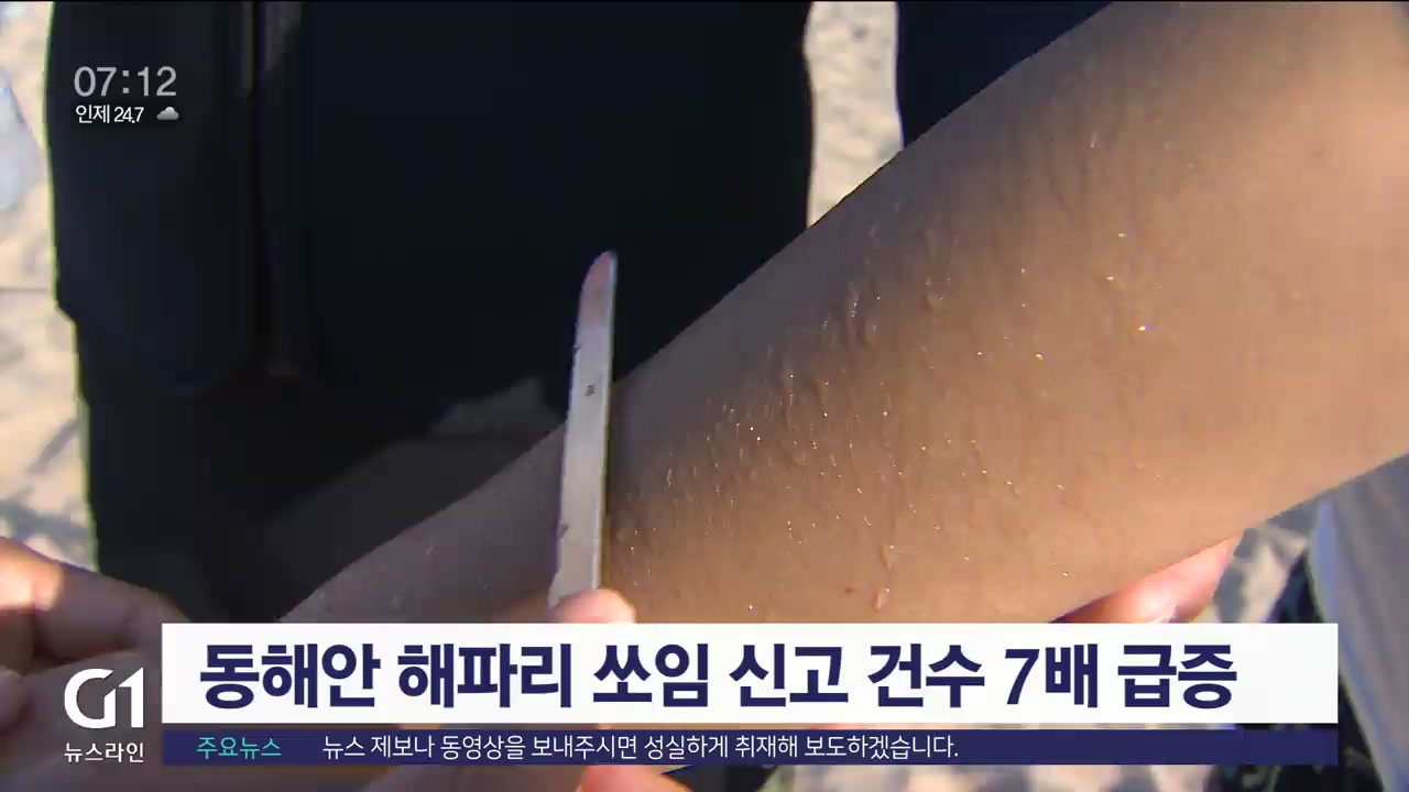 강원자치도 소방본부에 따르면, 해파리 쏘임 신고 건수는 지난해 7월 46건이었지만, 올해 7월에는 332건으로, 7배가량 늘었습니다.