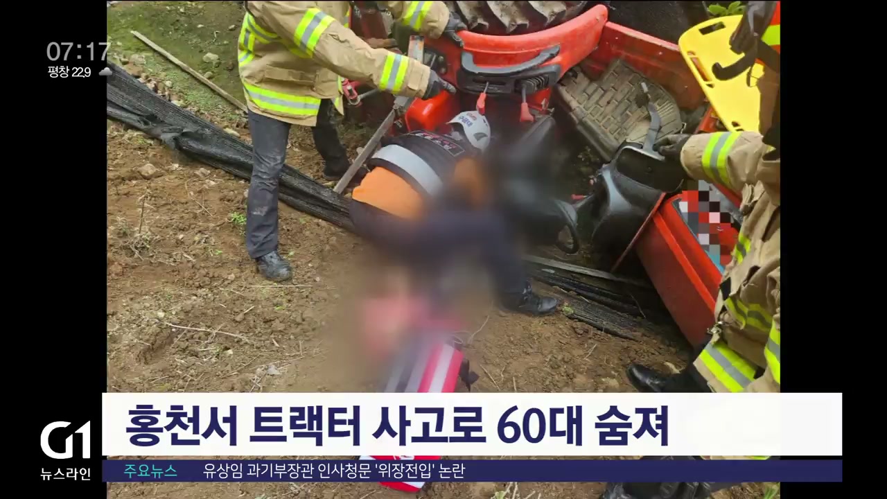 어제 오후 1시 3분쯤 홍천군 남면 유치리에서 60대 A씨가 몰던 트랙터가 농로 옆으로 전도됐습니다.