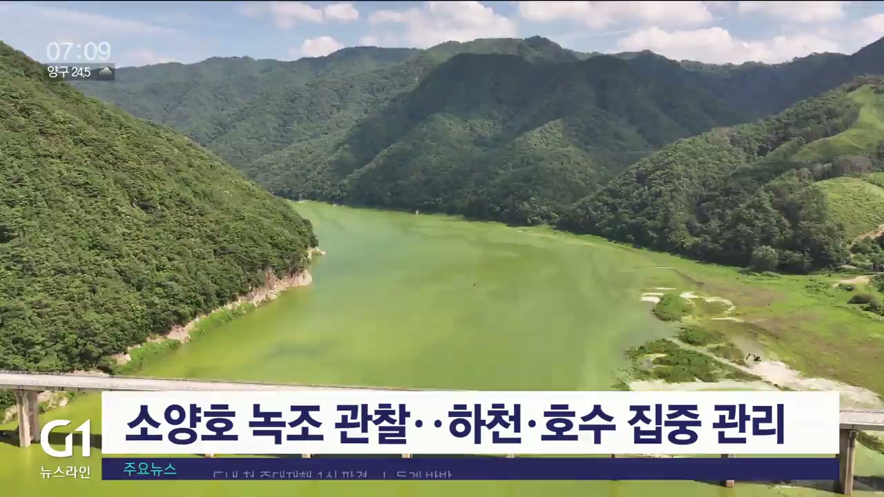 강원자치도는 최근 장마로 인한 상류 오염원 유입과 폭염으로 소양호 상류에서 녹조가 관찰됨에 따라, 하천과 호수에 대한 집중 관리에 나섰습니다.