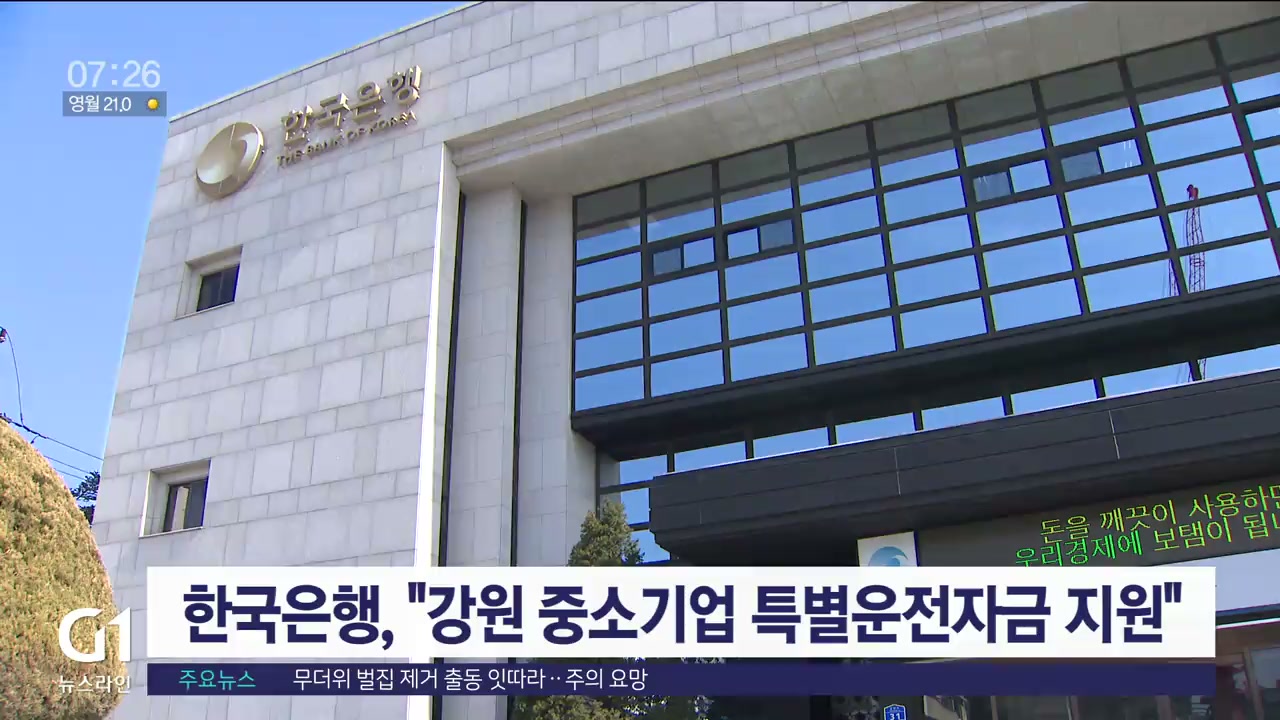 한국은행 강원본부와 강릉본부는 오는 19일부터 다음달 추석 연휴 전까지, 도내 중소기업이 운전 자금을 저리로 대출할 수 있도록 도내 금융기관에 백억 원을 지원한다고 밝혔습니다.