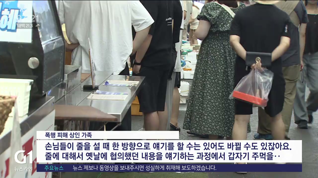 "손님들이 줄을 설 때 한 방향으로 얘기를 할 수는 있어도 바뀔 수도 있잖아요. 줄에 대해서 옛날에 협의했던 내용을 얘기하는 과정에서 갑자기 주먹을.."