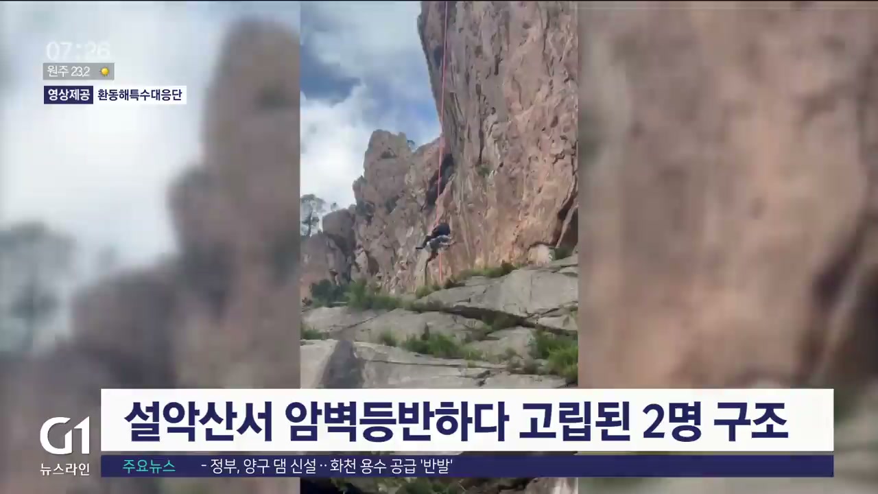 강원자치도소방본부 환동해특수대응단은 지난 28일 오후 1시 30분쯤 설악산 비선대 인근 적벽에 사람이 매달려 있다는 신고를 받고 출동해 30대 A씨 등 2명을 구조했다고 밝혔습니다.