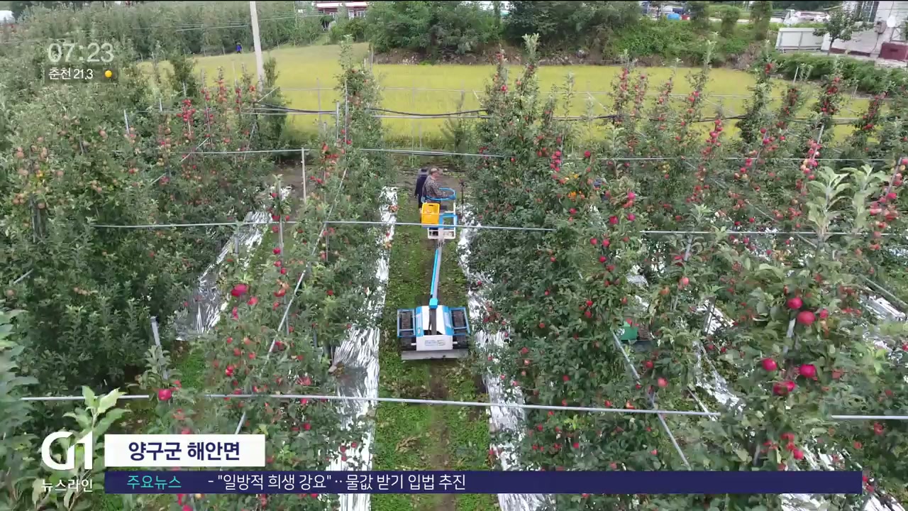 양구군은 도내 가장 큰 사과 재배 면적을 보유하고 있고, 215개 농가가 사과를 생산합니다.