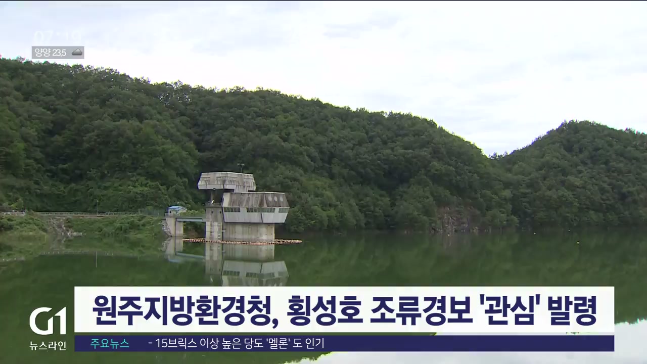 원주지방환경청이 횡성호 취수탑 지점에 조류경보 '관심' 단계를 발령했습니다.