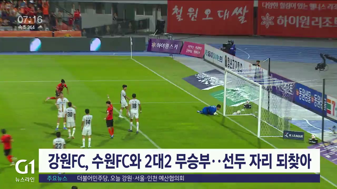 강원FC, 수원FC와 2대2 무승부..선두 자리 되찾아