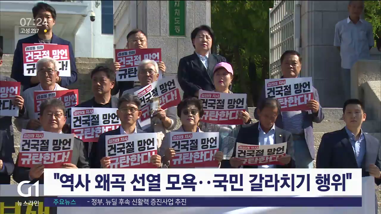 "명백한 역사적 사실에도 불구하고 건국절 망언을 쏟아내는 것은 역사를 왜곡해 선열을 모욕하고 국민을 갈라치기 하는 행위"라고 주장했습니다.