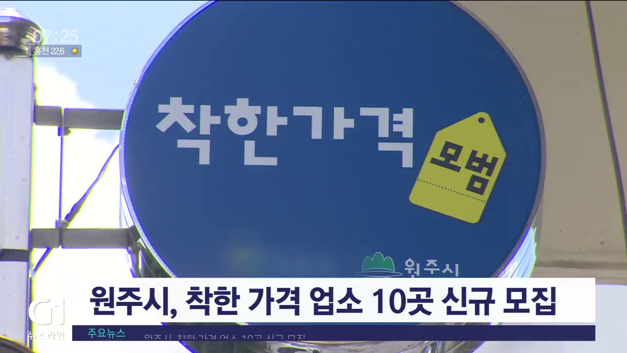 원주시가 오는 20일까지 착한 가격 업소 10곳을 신규 모집합니다.