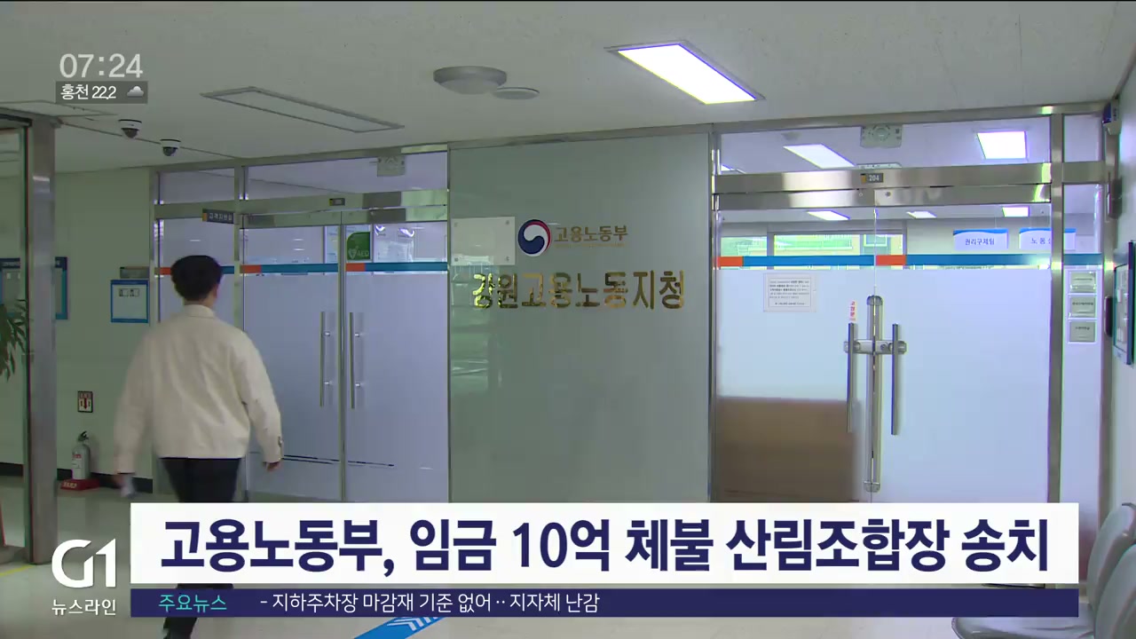 지난 5월 도내 한 산림조합이 임금 10억 원을 체불했다는 G1 보도와 관련해 노동당국이 해당 산림조합장을 검찰에 송치했습니다.
