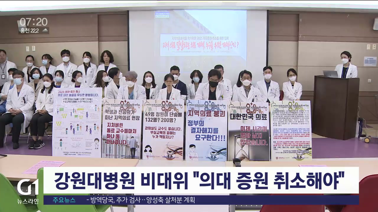 강원대학교 의과대학 병원 교수 비상대책위원회는 어제(12일) 강원대병원 어린이병원에서 기자 간담회를 열고 정부에 내년도 의대 증원 취소를 요구했습니다.
