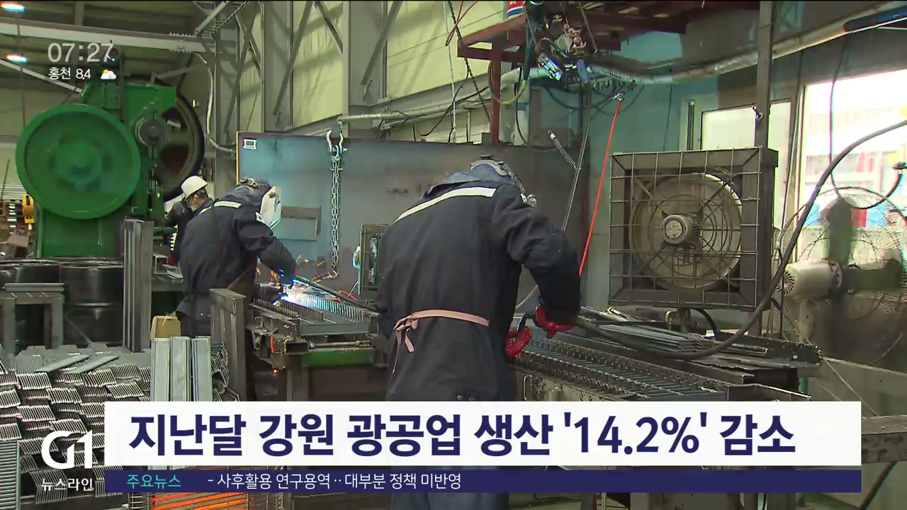 강원지방통계청이 발표한 '8월 강원 산업활동동향'을 보면, 광공업 생산은 지난해 같은 달에 비해 14.2% 줄었습니다.