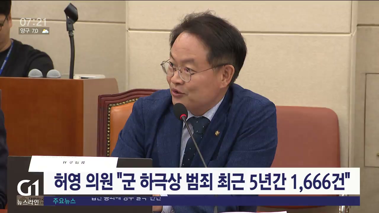 허영 의원은 무너지는 군 기강을 바로잡을 강력한 지휘, 명령 체계를 수립해야 한다면서도, 범죄의 원인이 상관의 직권을 벗어난 행위에서 비롯된 것은 아닌지도 함께 살펴봐야 한다고 강조했습니다.