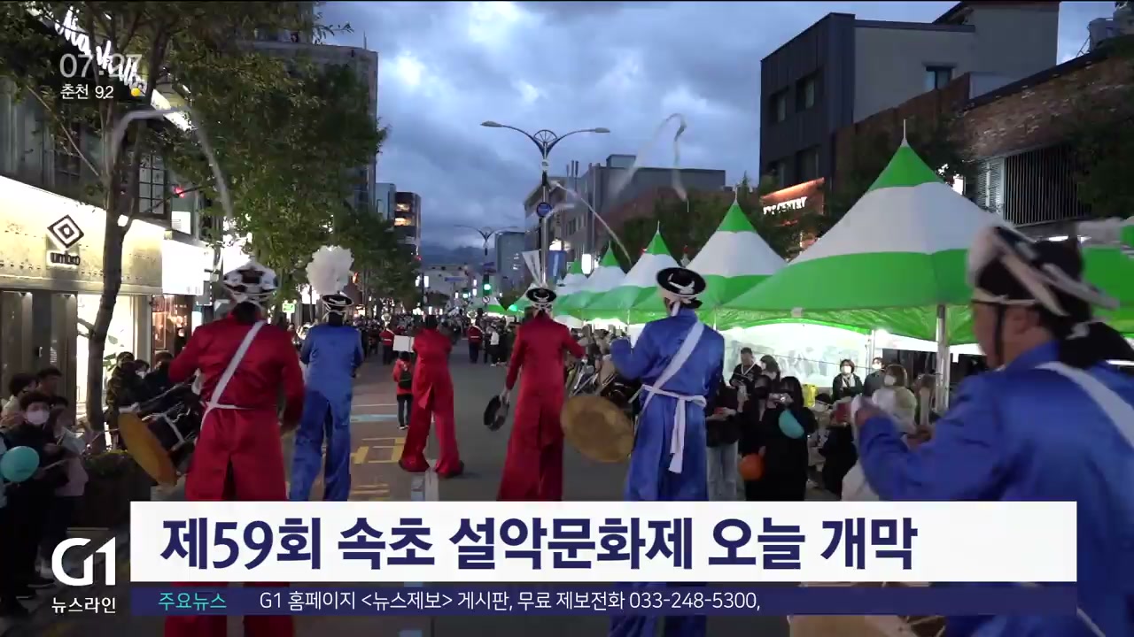 제59회 속초 설악문화제가 오늘(4일)부터 사흘간 엑스포 잔디광장 일원에서 열립니다.