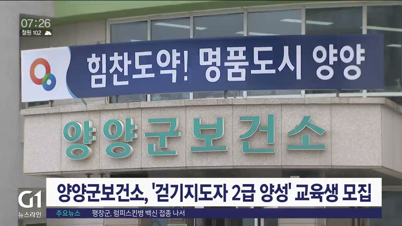 양양군보건소가 주민들의 걷기 실천 건강 분위기를 확산하기 위한 '걷기지도자 2급 양성과정' 교육생 30명을 모집합니다.