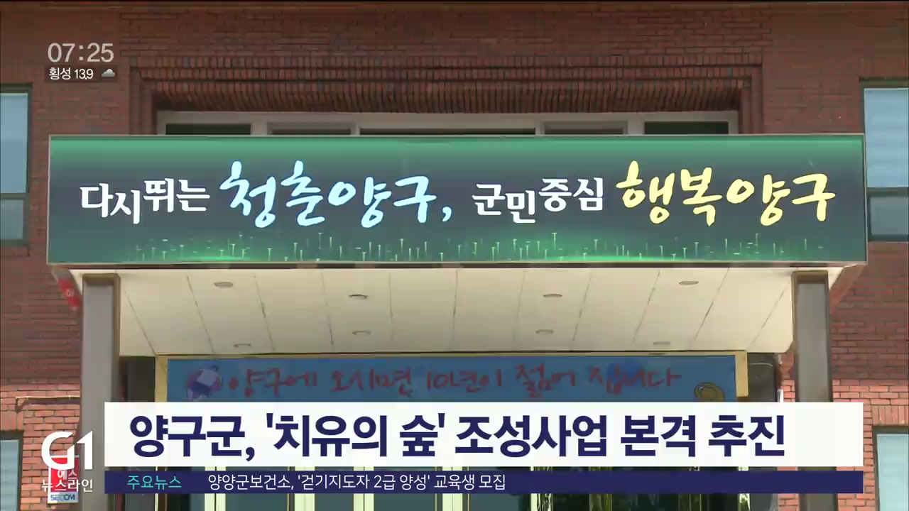 양구군이 지역 주민들의 휴식과 지역 경제 활성화를 위한 '치유의 숲' 조성 사업을 추진합니다.