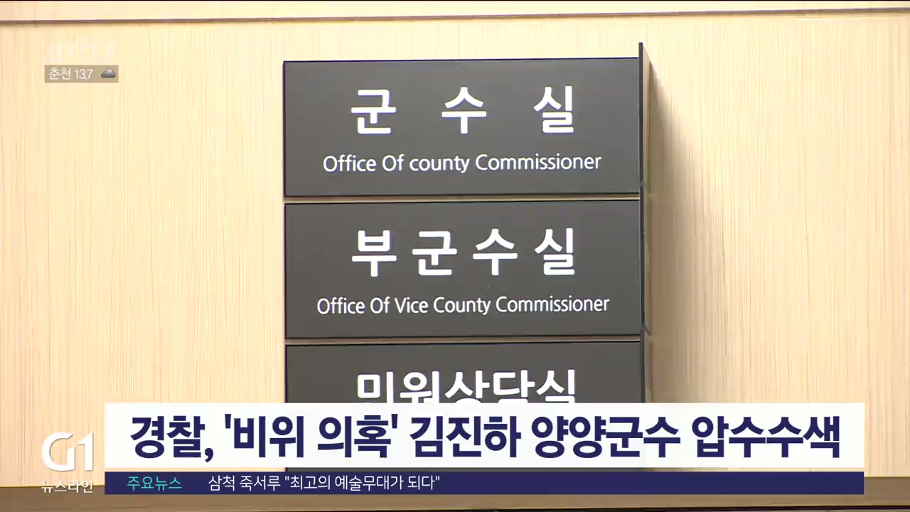 강원경찰청 반부패경제범죄수사대는 어제(10일) 양양군청 군수실과 비서실, 인허가 부서, 군수 자택 등을 압수수색했습니다.