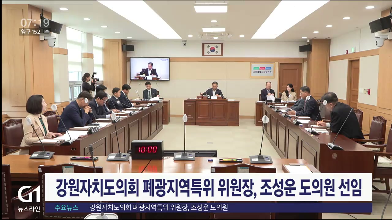 강원자치도의회는 어제(15일) '폐광지역개발지원 특별위원회'에서 조성운 도의원을 위원장에, 부위원장으로는 윤길로 도의원을 선임했습니다.