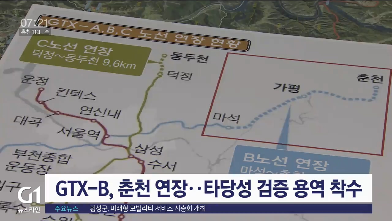 국토교통부는 춘천시와 가평군이 '원인자 비용부담사업'으로 GTX-B 연장사업을 건의함에 따라 타당성 검증용역에 착수한다고 발표했습니다.