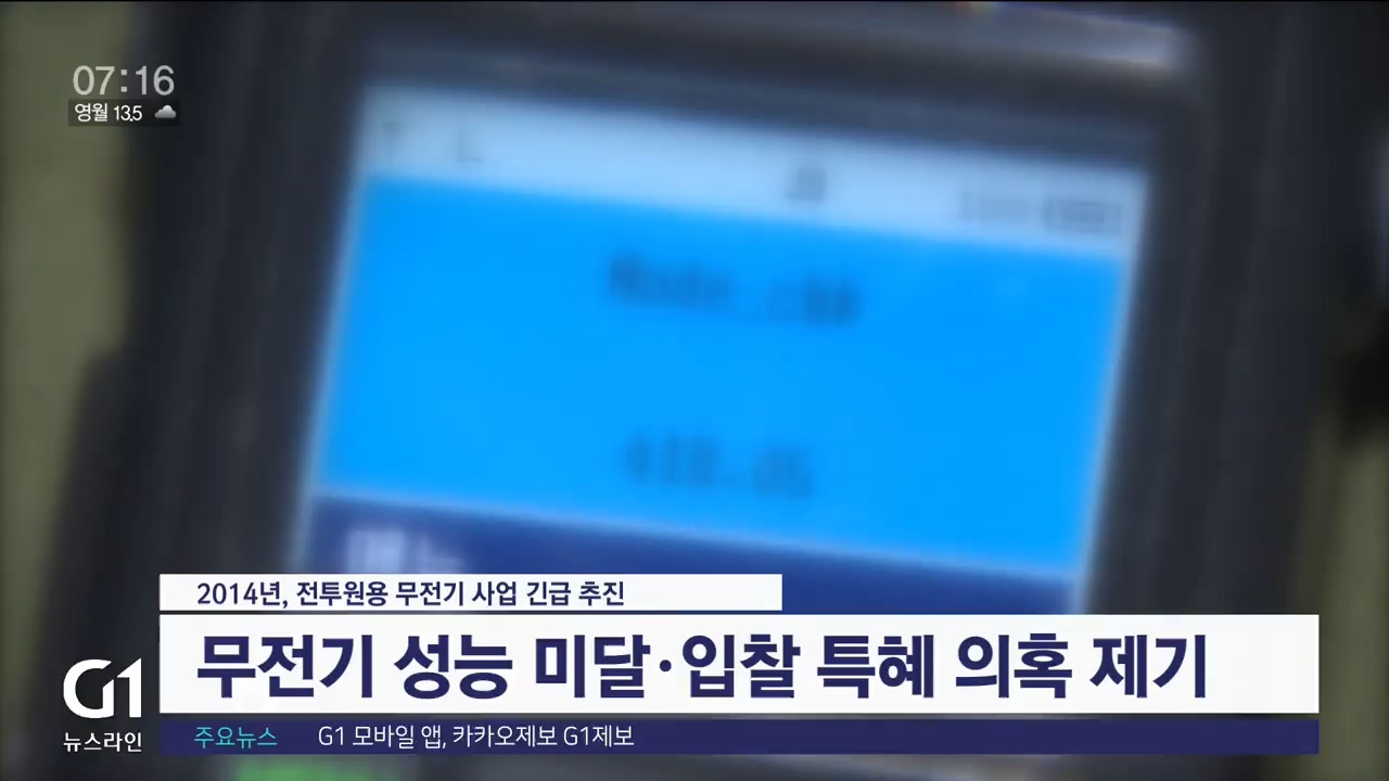 G1방송은 지난 2024년 9월 24일부터 10월 31일까지 61회에 걸쳐 TV 방송 및 홈페이지, 유튜브를 통해 우리 군이 납품받은 전투원용 무전기가 통신거리가 짧고, 방수가 안되며 전원을 끄지 않은 채로 배터리를 빼면 채널 정보가 삭제되는 등 성능이 떨어지고, 1, 2차 무전기 간 호환도 되지 않으며, 불량률도 높아 결국 무전기 개선에 20억을 추가로 투입 예정이고, 입찰 과정에서 납품업체에만 특정 정보를 줬다는 특혜 의혹도 불거졌다고 보도했습니다.