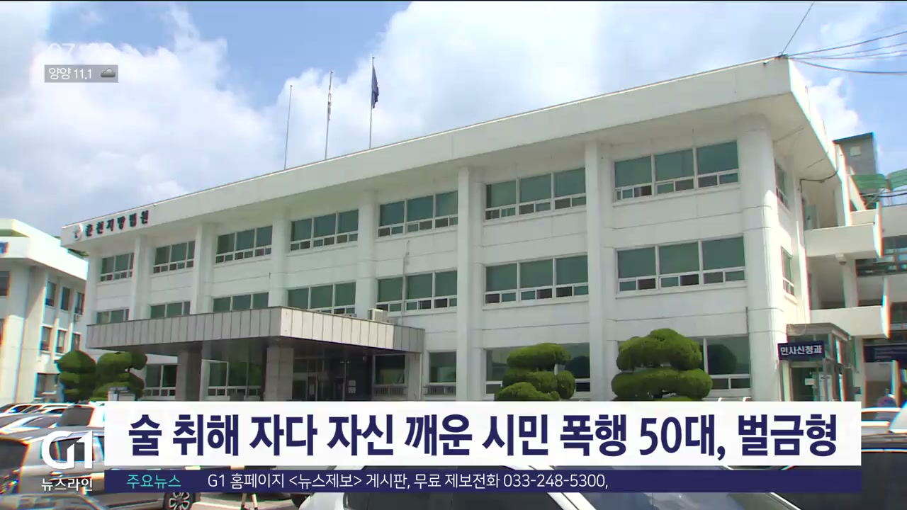 A씨는 지난 2월 17일 오후 10시 46분쯤 춘천의 한 술집 앞 도로에서 자신을 깨운 B씨를 폭행한 혐의로 재판에 넘겨졌습니다.