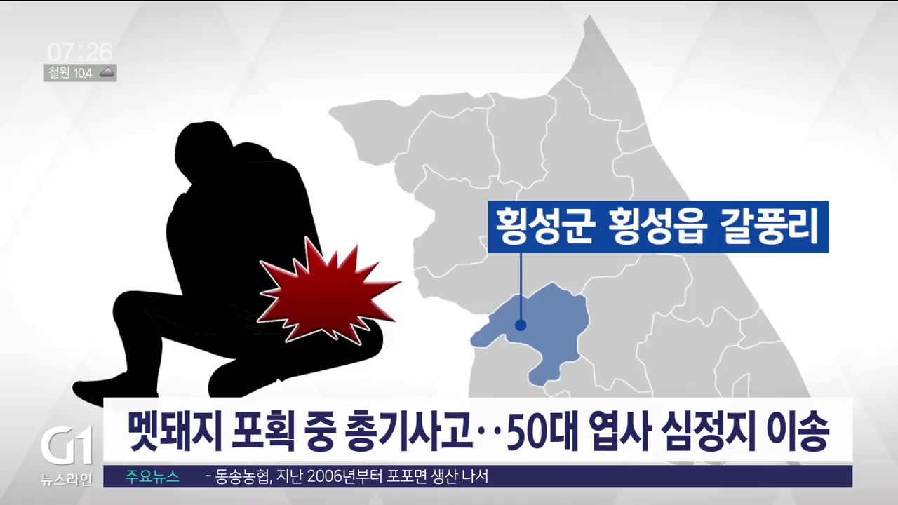 어제 오후 8시 52분쯤 횡성군 횡성읍 갈풍리의 한 야산에서 멧돼지 포획 중 총기 사고가 났습니다.