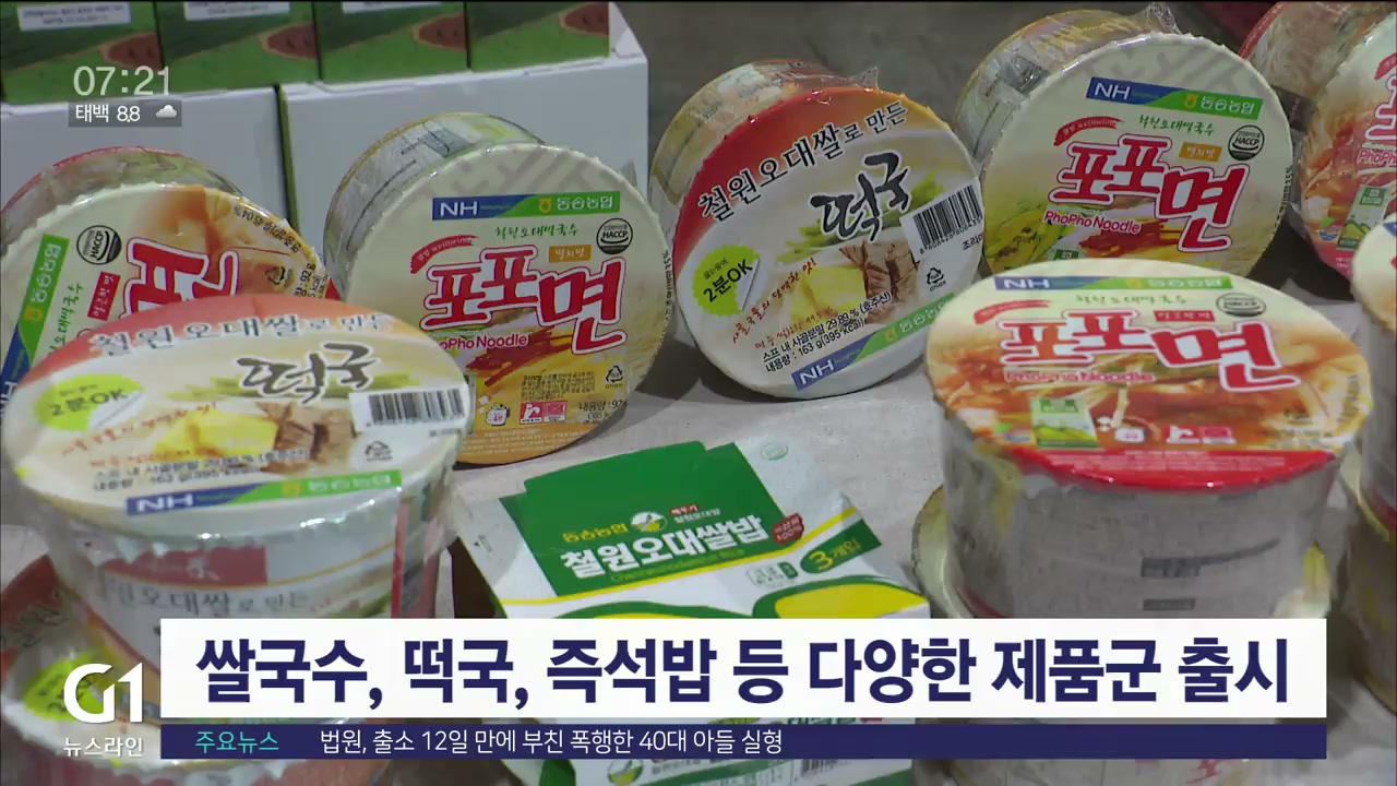 동송농협은 포포면 외에도 용기떡국과 즉석밥 등 다양한 쌀 가공식품을 개발해 선보이고 있습니다.