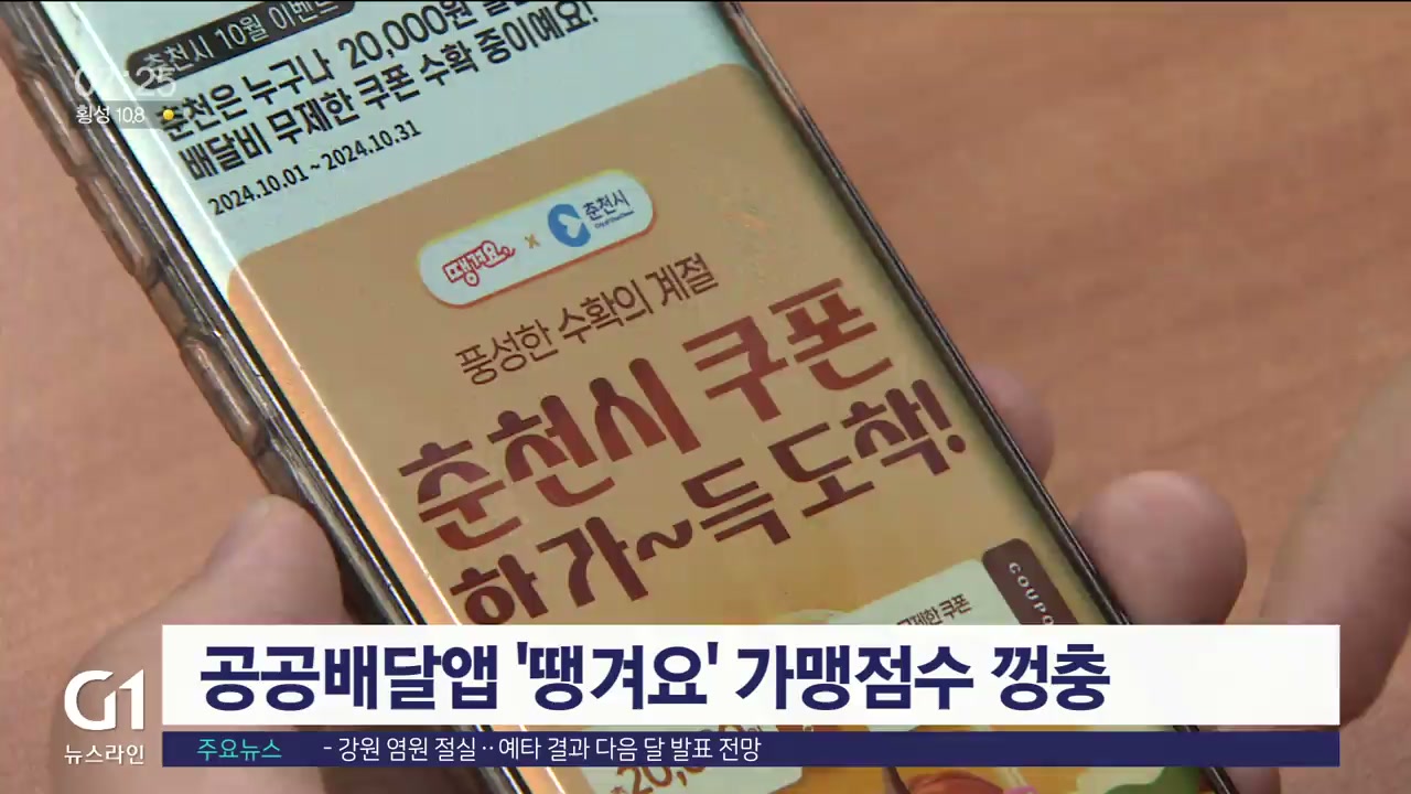 춘천시와 신한은행의 민·관 협력 공공배달앱 '땡겨요'에 가입한 가맹점 수가 945곳으로 집계됐습니다.