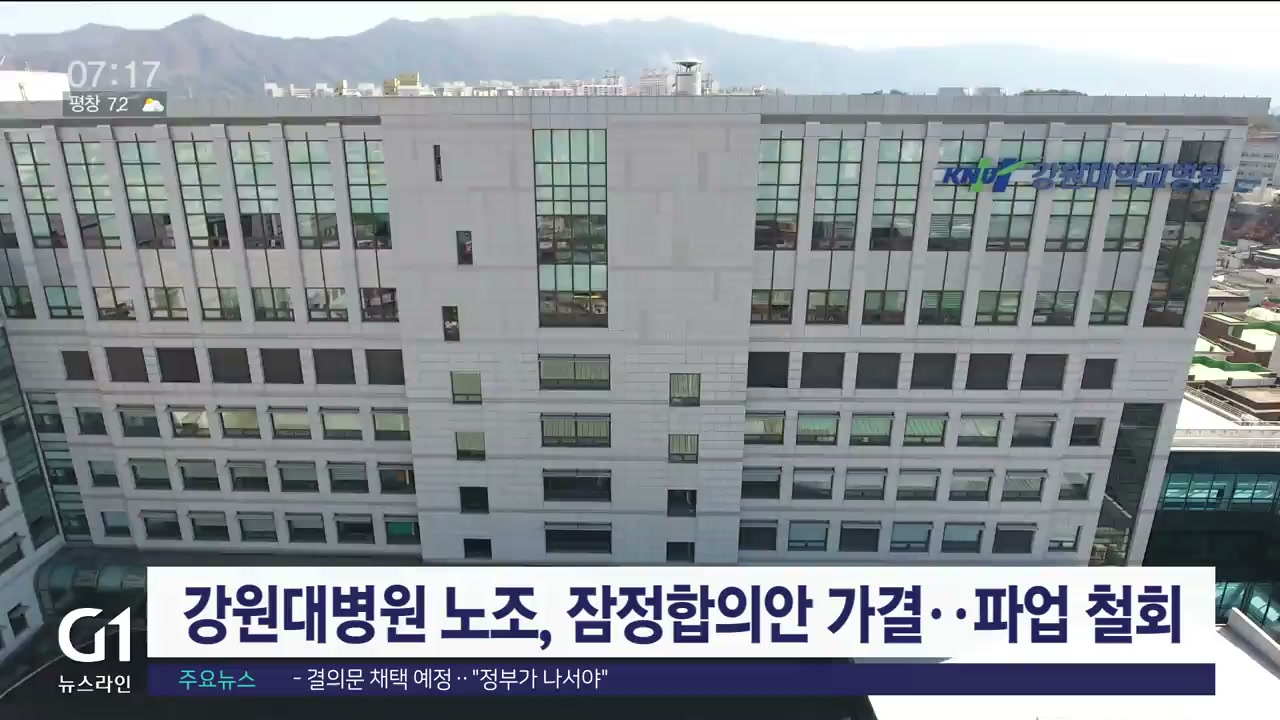 강원대병원 노조는 '2024년 임금 및 단체협약에 관한 잠정 합의안'에 대한 대의원 투표 결과 만장일치로 가결됐다며, 파업 계획을 철회한다고 밝혔습니다.