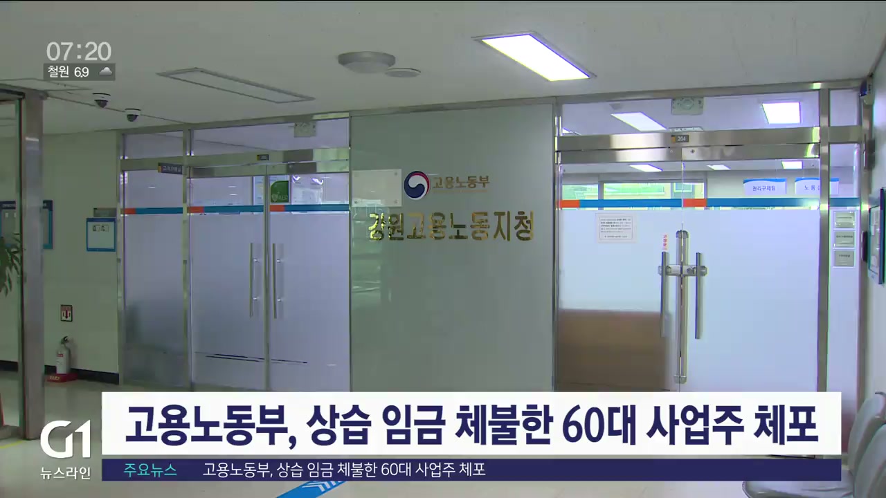 고용노동부 강원지청은 근로기준법 위반 혐의로 지난달 말 개인건설업자 60대 A씨를 체포했다고 밝혔습니다.