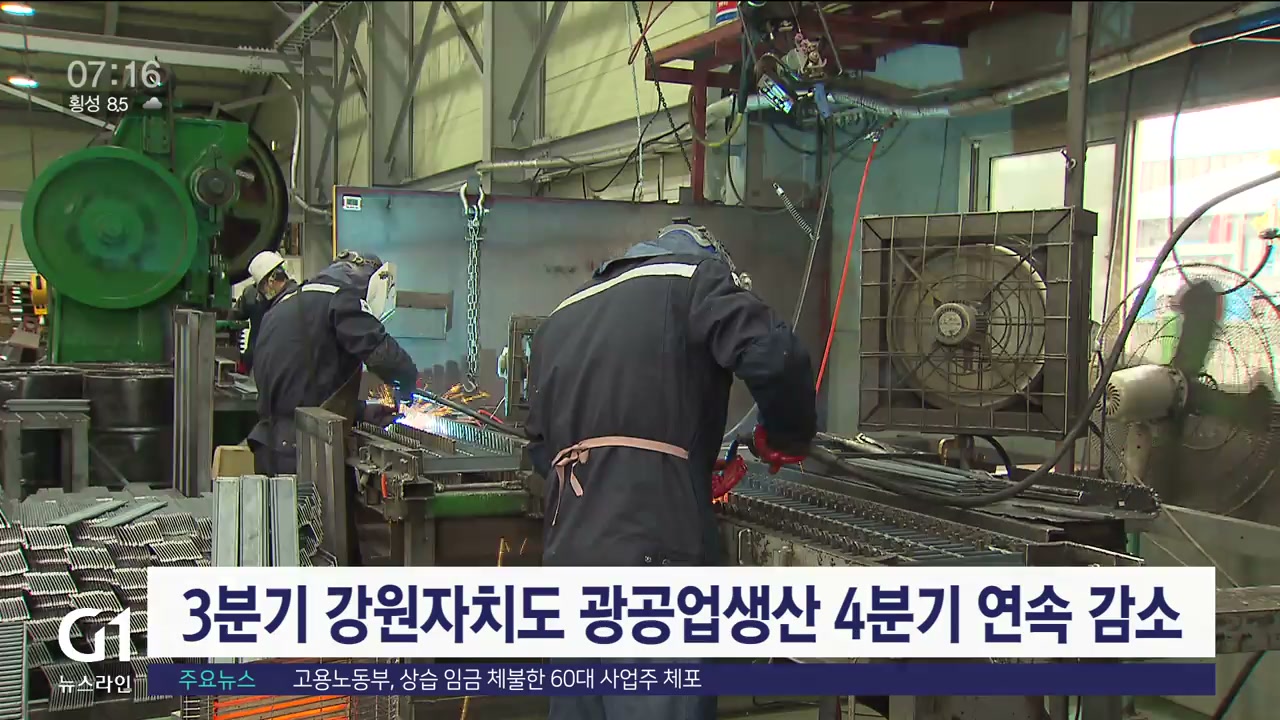 지난 3분기 강원자치도 광공업생산이 4개 분기 연속 하락한 것으로 나타났습니다.