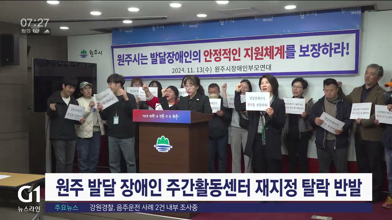 사단법인 강원도장애인부모연대 원주시지부는 원주시청에서 기자회견을 열고 "원주시는 최근 6개 발달 장애인 주간활동센터중 2개 기관을 재지정하지 않기로 했다"며,