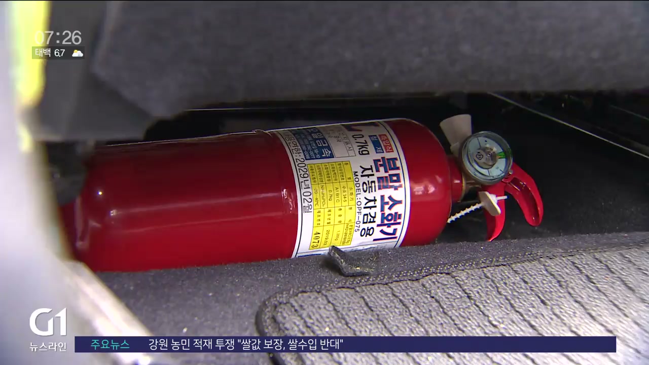 "현재는 7인승 차량이나 화물차에만 차량용 소화기 설치가 의무화 돼있지만, 다음달부터는 5인승 차량에도 차량용 소화기를 의무 설치해야 합니다."