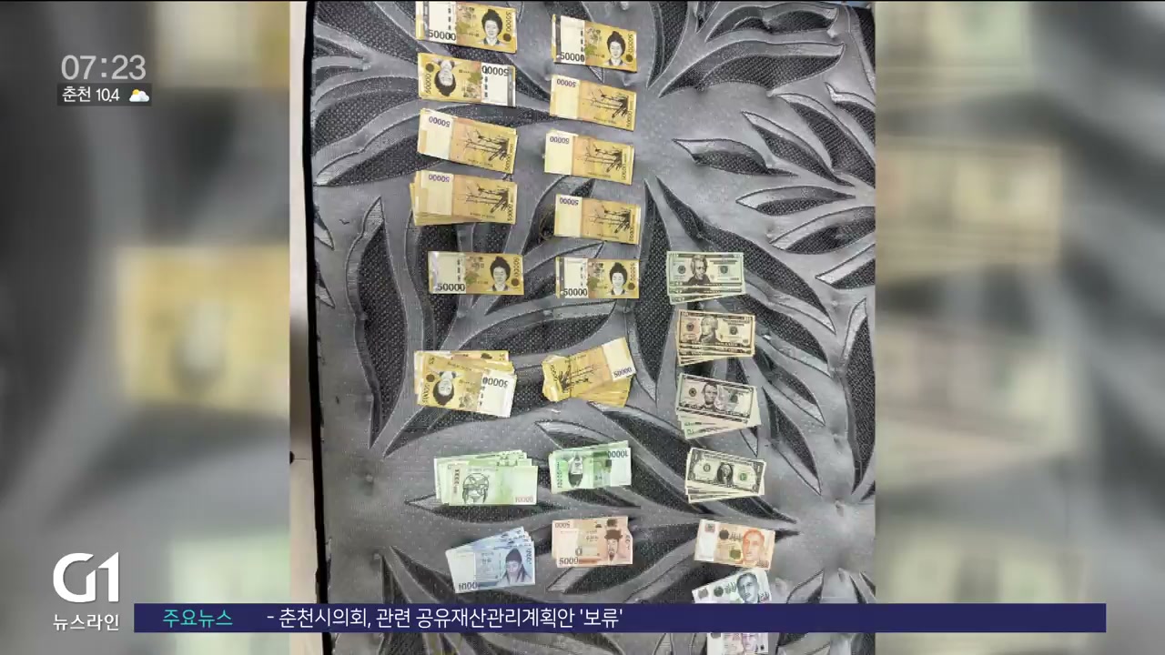 서랍을 열자 지폐가 무더기로 나옵니다.