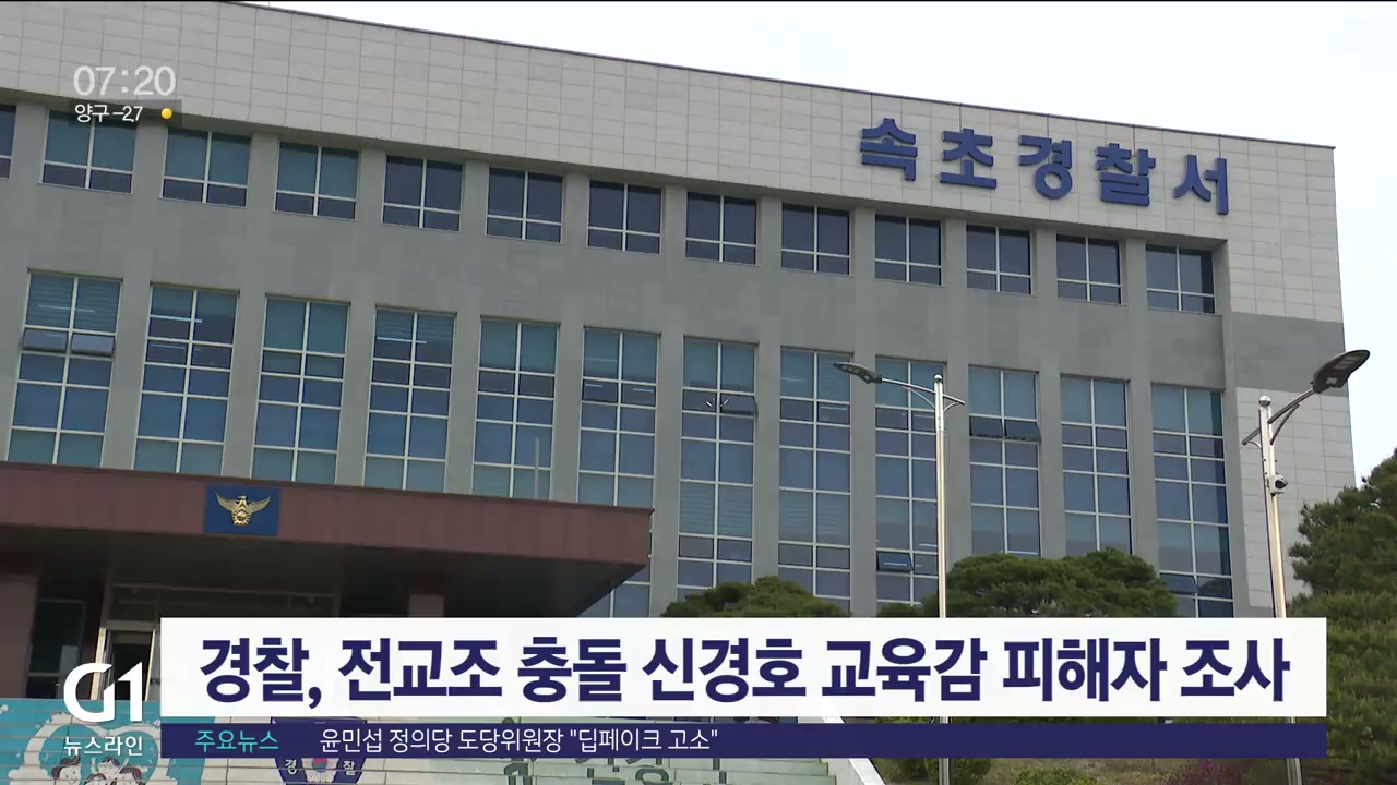 지난달 전국교직원노동조합 조합원과 물리적으로 충돌한 신경호 강원자치도교육감이 경찰 조사를 받았습니다.
