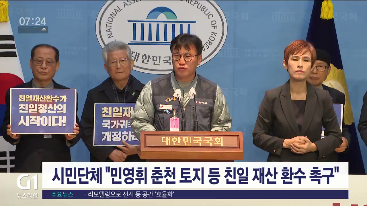 이어 "친일반민족행위는 천 명이 넘는데 현재까지 재산 환수가 이뤄진 인사는 168명에 불과하다"며, "국가가 환수하지 않으니 시민들이 직접 나서 귀속 신청을 하겠다"고 말했습니다.
