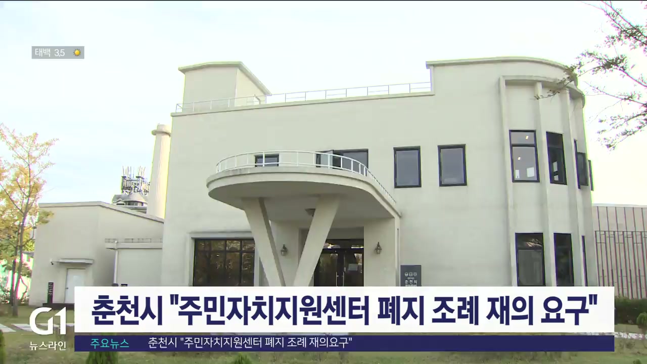 육동한 춘천시장이 '춘천시 주민자치지원센터 설립 및 지원 조례 폐지 조례안'에 대해 재의요구권을 행사했습니다.