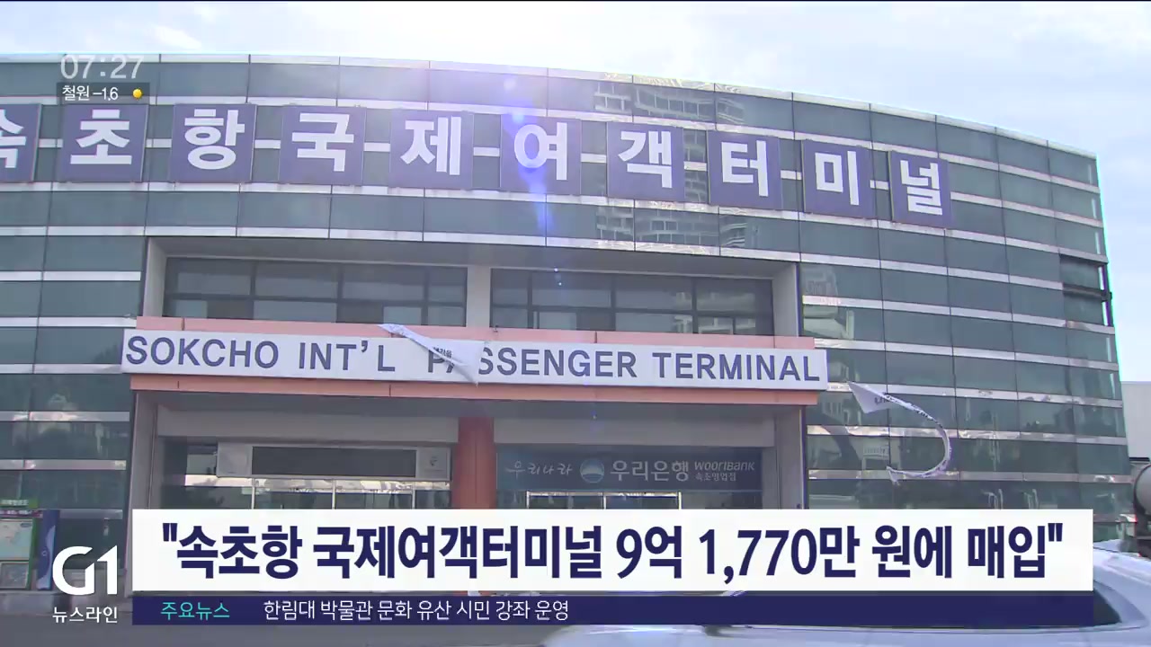 "속초항 국제여객터미널 9억1,770만원에 매입"