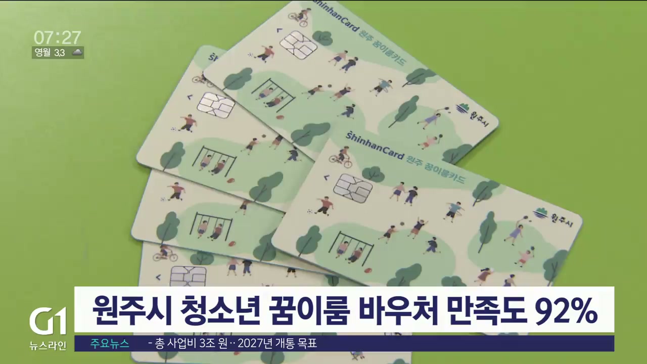 원주시는 최근 학부모 천여 명을 대상으로 청소년 꿈이룸 바우처 사업 만족도를 조사한 결과 92%의 높은 만족도를 기록했다고 밝혔습니다.