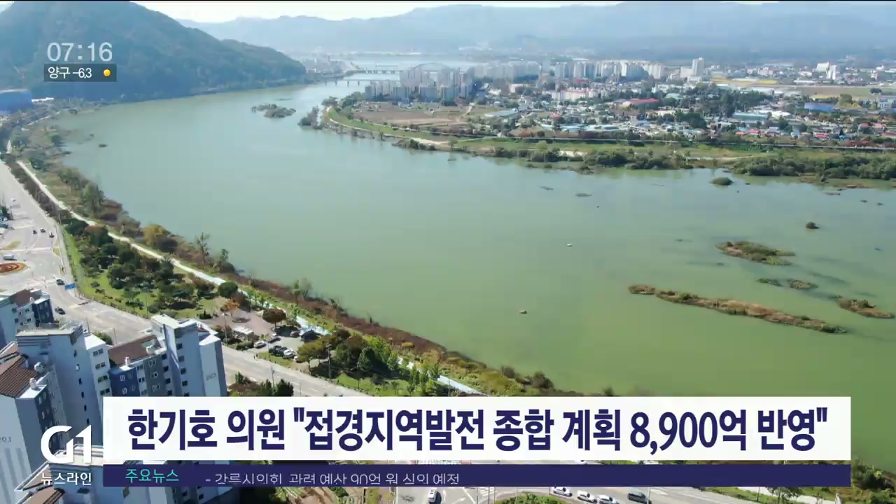 국민의힘 한기호 의원은 행정안전부가 마련한 ‘접경지역 발전 종합 계획 변경안’에 춘천 소양 8교 건설과 철원 한탄강 주상절리길 명소화, 화천 광덕 터널 방천~월명 간 도로 개설 등 24개 사업이 새로 포함됐습니다.