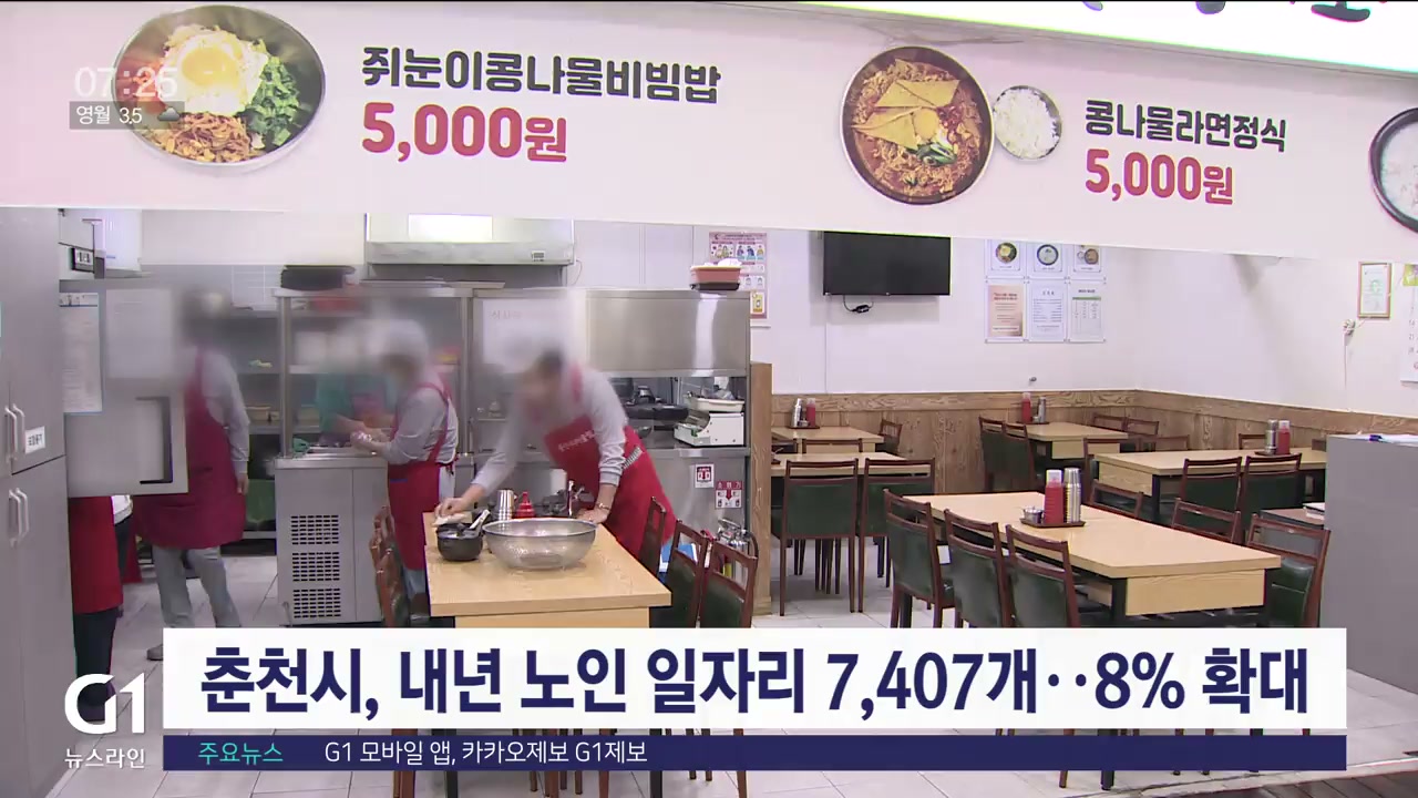 춘천시는 내년도 노인 일자리를 올해보다 7.83% 늘어난 7,407개 만들기로 하고 예산도 324억 원으로 37억 원 증액했다고 밝혔습니다.