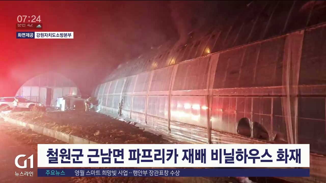 오늘(2일) 새벽 12시 17분쯤 철원군 근남면 사곡리의 파프리카 재배 비닐하우스에서 불이 났습니다.