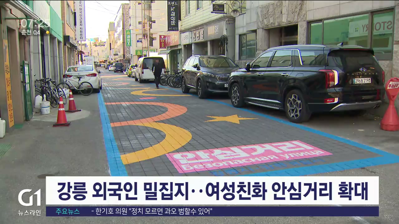 강릉시가 외국인 근로자 밀집지역의 여성친화 안심거리 조성 환경개선 사업을 확대합니다.
