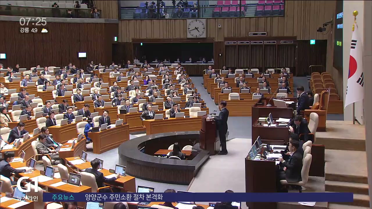 국회는 어제(10일) 오후 본회의를 열어 지난달 말 민주당이 단독으로 의결한 대로 정부안에서 4조 천억 원을 감액한 수정 예산안을 통과시켰습니다.