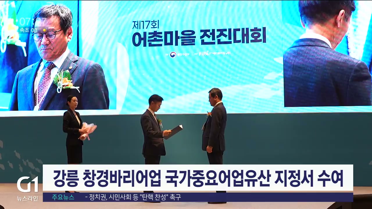 지난달 말 도내 최초로 국가중요 어업 유산으로 지정된 '강릉 창경바리어업'에 대한 지정서 수여식이 그랜드 하얏트 인천에서 열렸습니다.