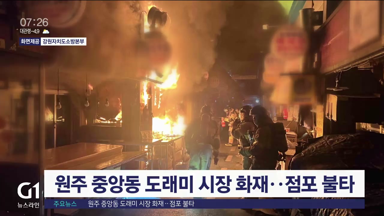 어젯밤 9시 25분쯤 원주 중앙동 도래미시장 만두골목에서 불이 나 1시간 여 만에 꺼졌습니다.