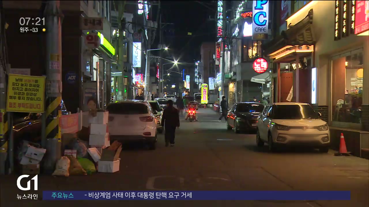 "이곳은 많은 인파로 늘 활기가 넘쳤던 먹자골목입니다. 그런데 비상 계엄 선포 이후 이렇게 보이시는 것처럼 거리가 텅 비어있습니다."
